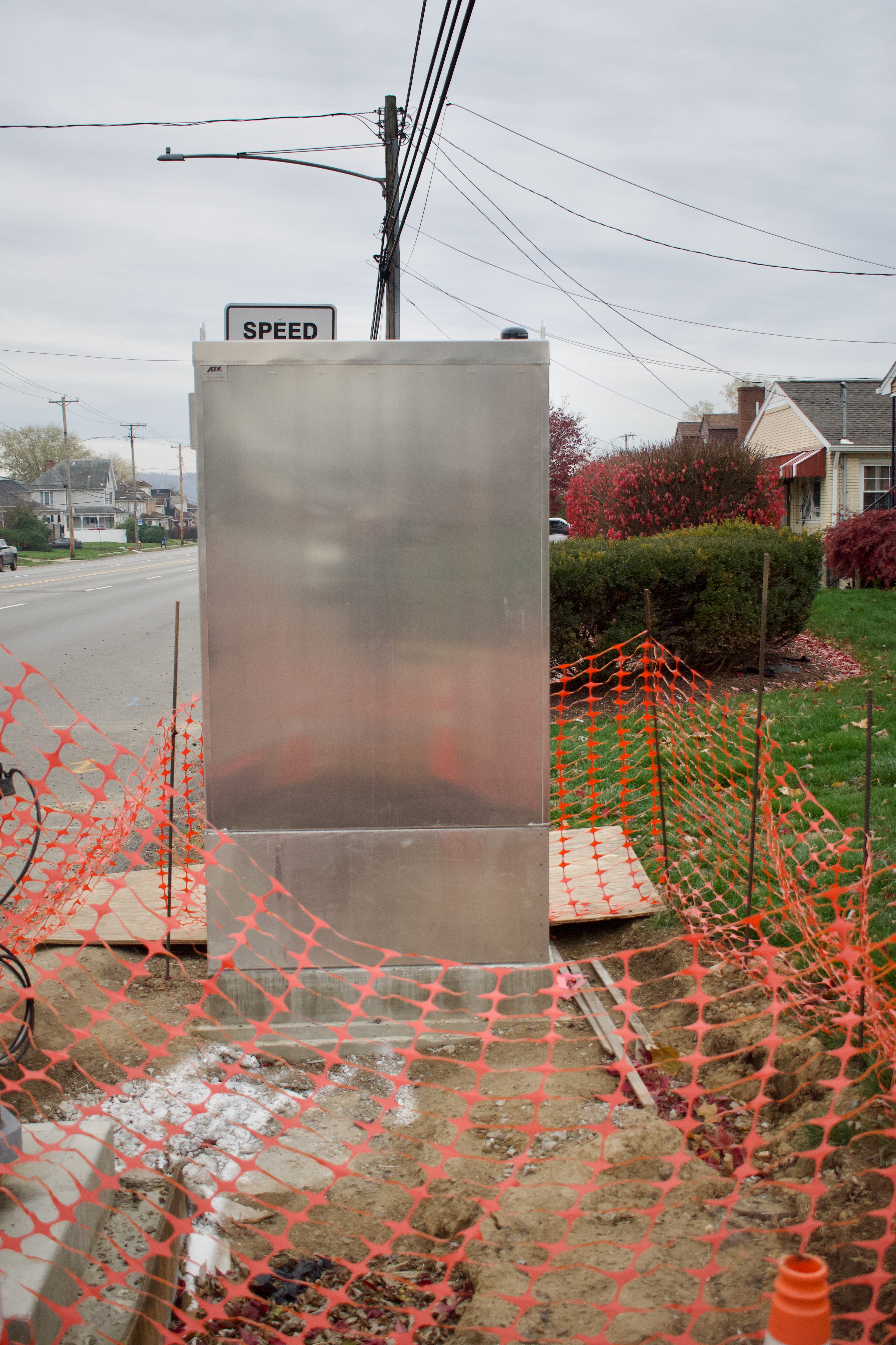 Both November meetings of the Neville Island Commisioners were dominated by an issue no one saw coming : the installation of an oversized utility box at the Gibson Lane Grand Avenue intersection. Replacement of the Gibson Lane traffic signal has been planned for four years. A grant was applied for and obtained and PennDot did all the preliminary planning. Area residents were notified. When work crews arrived no one was concerned. But when residents returned from work that afternoon they were stunned to see an eight foot tall, five foot long and three foot wide stainless steel tower installed in the front yard of the Belloma home. The tower blocks the view from the porch and dominates the scene from any direction. The tower is so big motorists can no longer see the speed limit sign behind it. When contacted, Neville Engineer Drew Null explained that the former light and box were 1970 equipment. In 2025 bigger boxes are necessary because modern electronics require more sophisticated wiring, and security laws now require large batteries be installed so in case of a power failure traffic lights continue to operate. The Gibson Lane intersection is prone to flooding so the box is mounted on a high pedestal to keep the electronics and battery above water. (In the photos the bottom two sections are that pedestal.) There is a storm sewer at the corner, and ADA ramps must be installed, which required the box be moved into the yard. Null also explained that even though the box is technically in the Paloma yard, the PennDot right of way does extend several feet beyond the pavement so the box is still within that right of way. Nevertheless, Mrs. Belloma and neighbors came to the podium to express their objections to the unsightly tower and ask that it be reduced in size and/or moved. Null explained that the original costs were covered by the grant but changing or moving the box would be expensive and not covered by the grant. Commissioner Will Belsterling asked that at the next meeting Council at least be informed of exactly what that cost would be. |